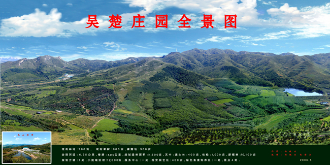 錦州吳楚莊園集團(tuán)有限責(zé)任公司位于風(fēng)景秀麗的凌海市白臺子鄉(xiāng)興隆峪村,是一家集生態(tài)農(nóng)業(yè)、林果栽培、大田種植、畜禽養(yǎng)殖、莊園農(nóng)業(yè)觀光、餐飲休閑娛樂、建筑裝飾工程于一體的大型綜合性莊園企業(yè)。公司成立于2004年,占地面積35000畝,注冊資本2500萬元人民幣,員工百余人。公司自創(chuàng)建到現(xiàn)在,歷經(jīng)幾年的發(fā)展,先后投資8000余萬元,建立了乳山林果有限公司、吳楚度假村、吳楚戶外運(yùn)動部、四海建設(shè)工程有限公司等多家子公司。